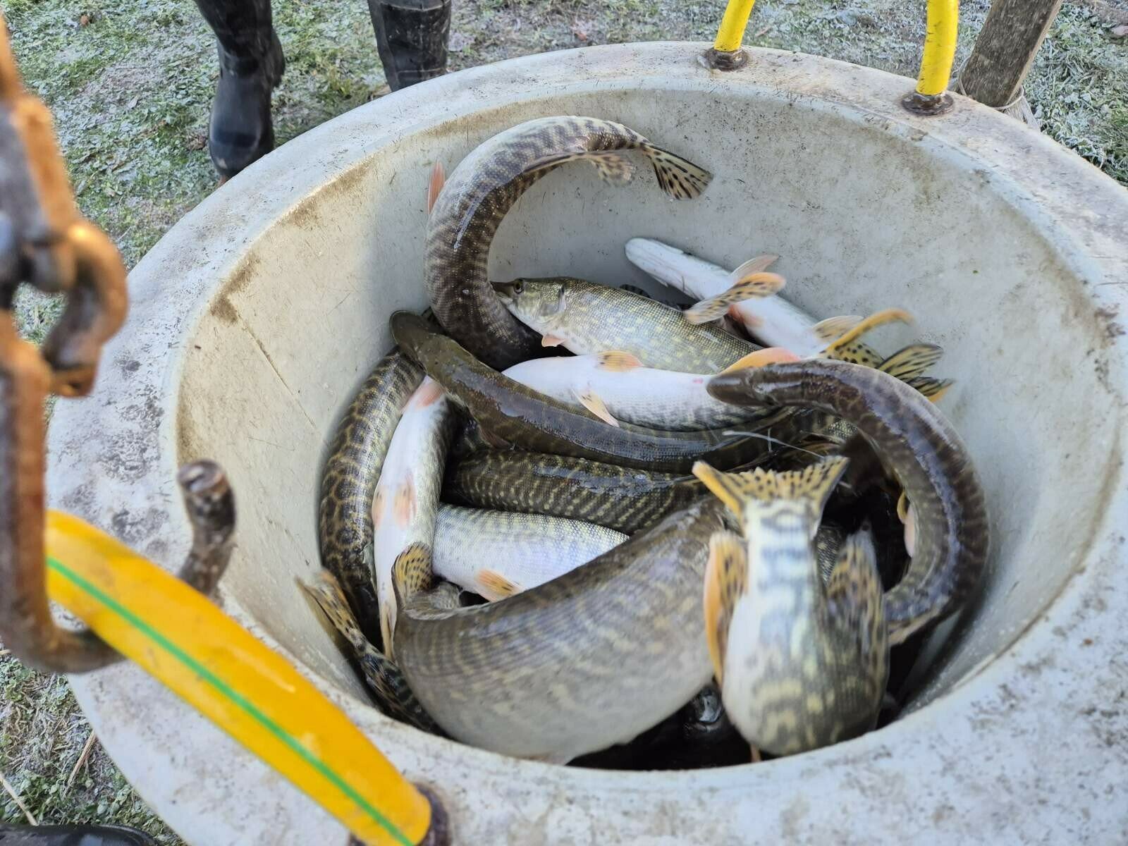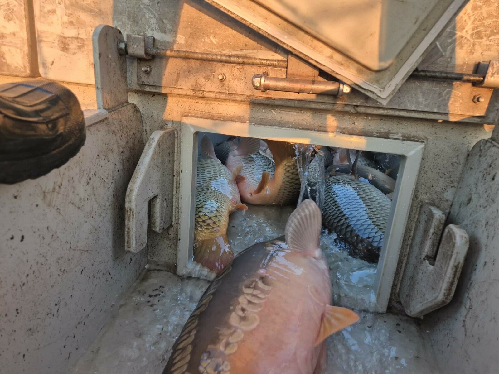 Gemäß den vorläufigen Meldungen und mit Unterstützung des Antrags des Ungarischen Nationalen Fischereiverbandes „Ansiedlung und Wiedereinführung einheimischer Standard- und bevorzugter Fischarten“ (ÁPFE-VII-4/2025) sowie des Projekts „Entwicklung des Karpfenbestands in Angelgewässern“ (ÁPFE-VII/8/2025) wurden am Freitag 750 kg Hechte der ersten und zweiten Sommerklasse von Tógazda Halászati ZRT. und 2000 kg besonders große Karpfen mit einem Durchschnittsgewicht von 9,35 kg aus dem Bestand von Bertalan és Társai Halászati KFT. in die Gewässer von Vási eingesetzt. Die Aussetzungen erfolgten in folgenden Gewässerabschnitten: I.-II. Hechtbesatz im Sommer: Fluss Rába – Abschnitt des Komitats Vas – 100 kg Bootssee Szombathely – 50 kg Angelsee Szombathely – 50 kg Seen Vasvár – 50 kg Kiessee Magyarszecsőd – 100 kg Kiessee Csánig – 50 kg Angelsee Gencsapát – 50 kg Kiessee Rábasömjén – 50 kg Kerkaszentkirályi Kerka-See – 50 kg Celldömölk-Ziegelei- und Parksee – 100 kg Csepreg-Ziegeleisee – 100 kg* (Der Besatz in Csepreg wurde mit der Unterstützung des Répcementi-Angelvereins durchgeführt, wofür wir im Voraus danken.) Extragroßer Karpfenbesatz in den folgenden Gewässern: Püspökmolnár-Kiesgrubensee – 300 kg Szombathely Bootssee und Angelsee – 500 kg Máriaújfalu Hársas See – 500 kg Magyarszecsőd Kiesgrubensee – 700 kg