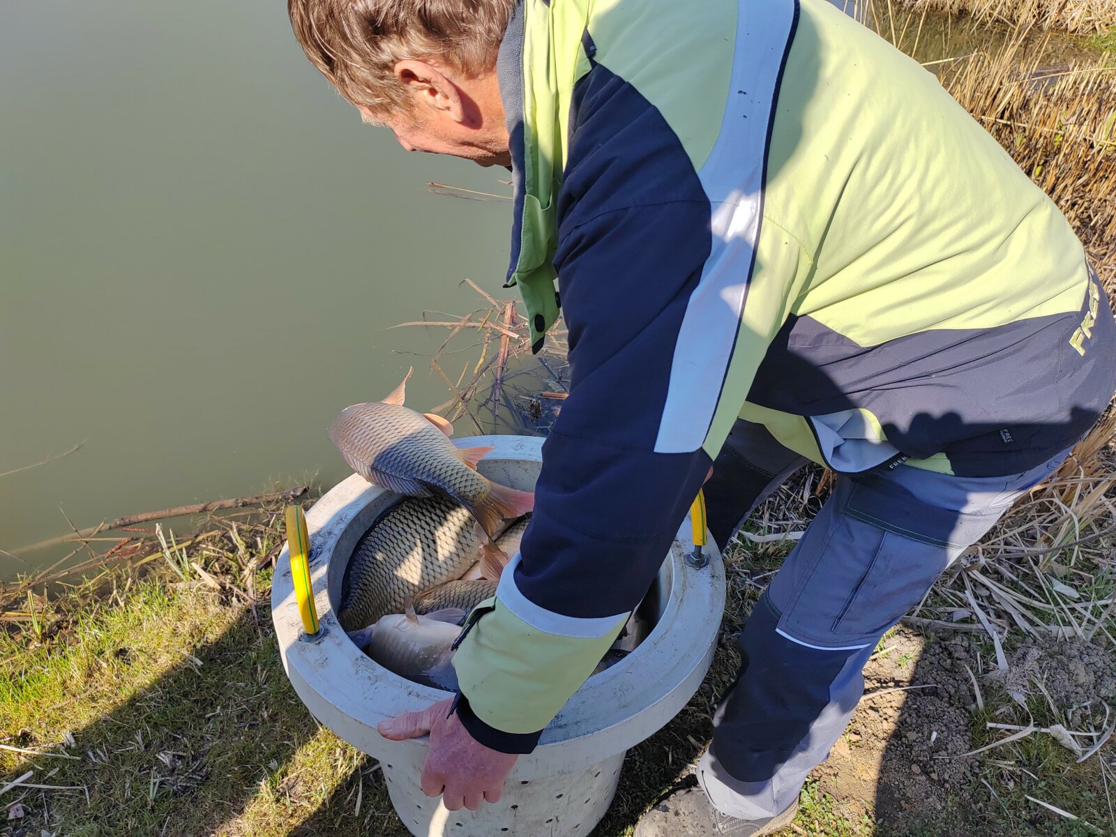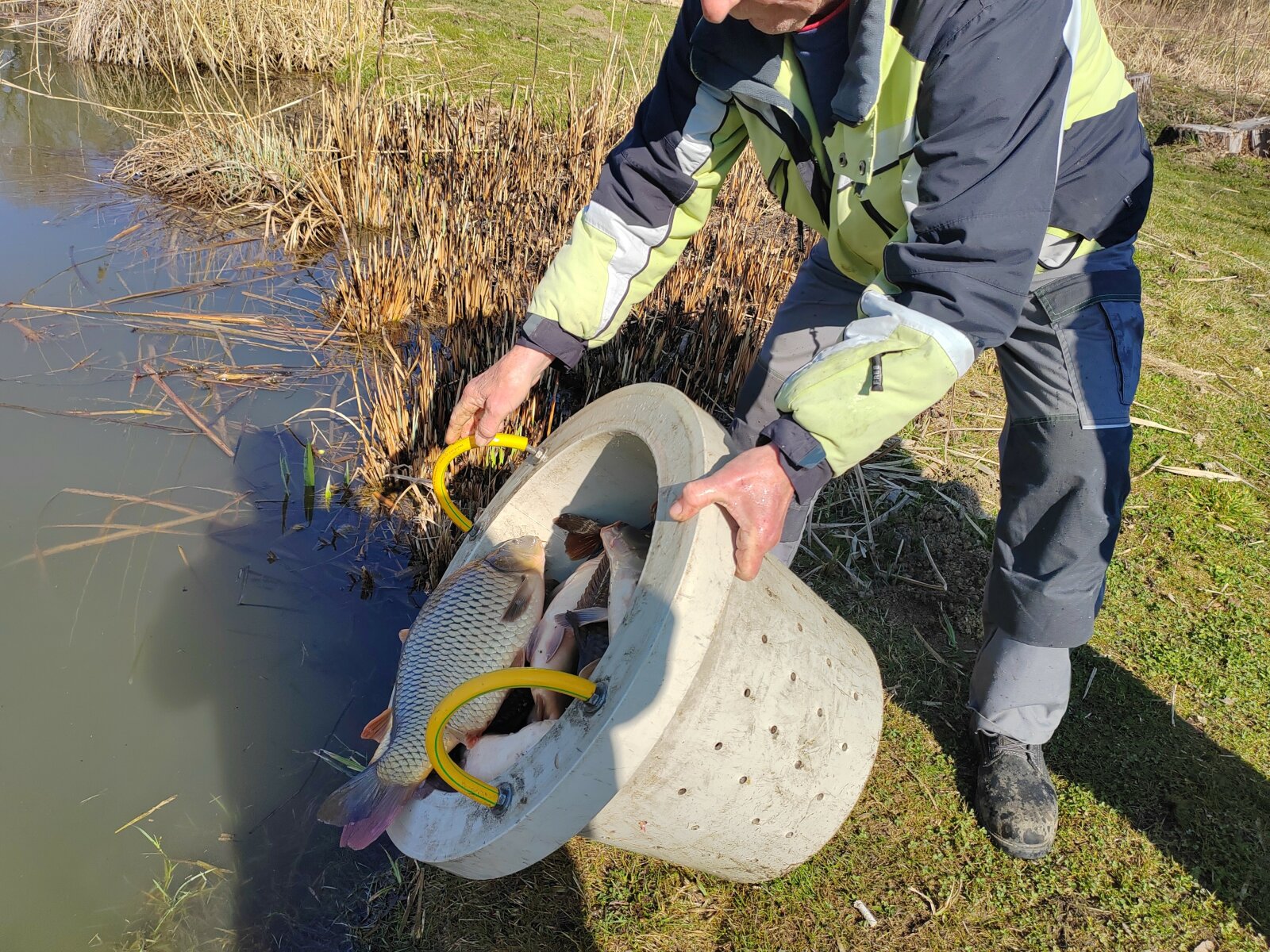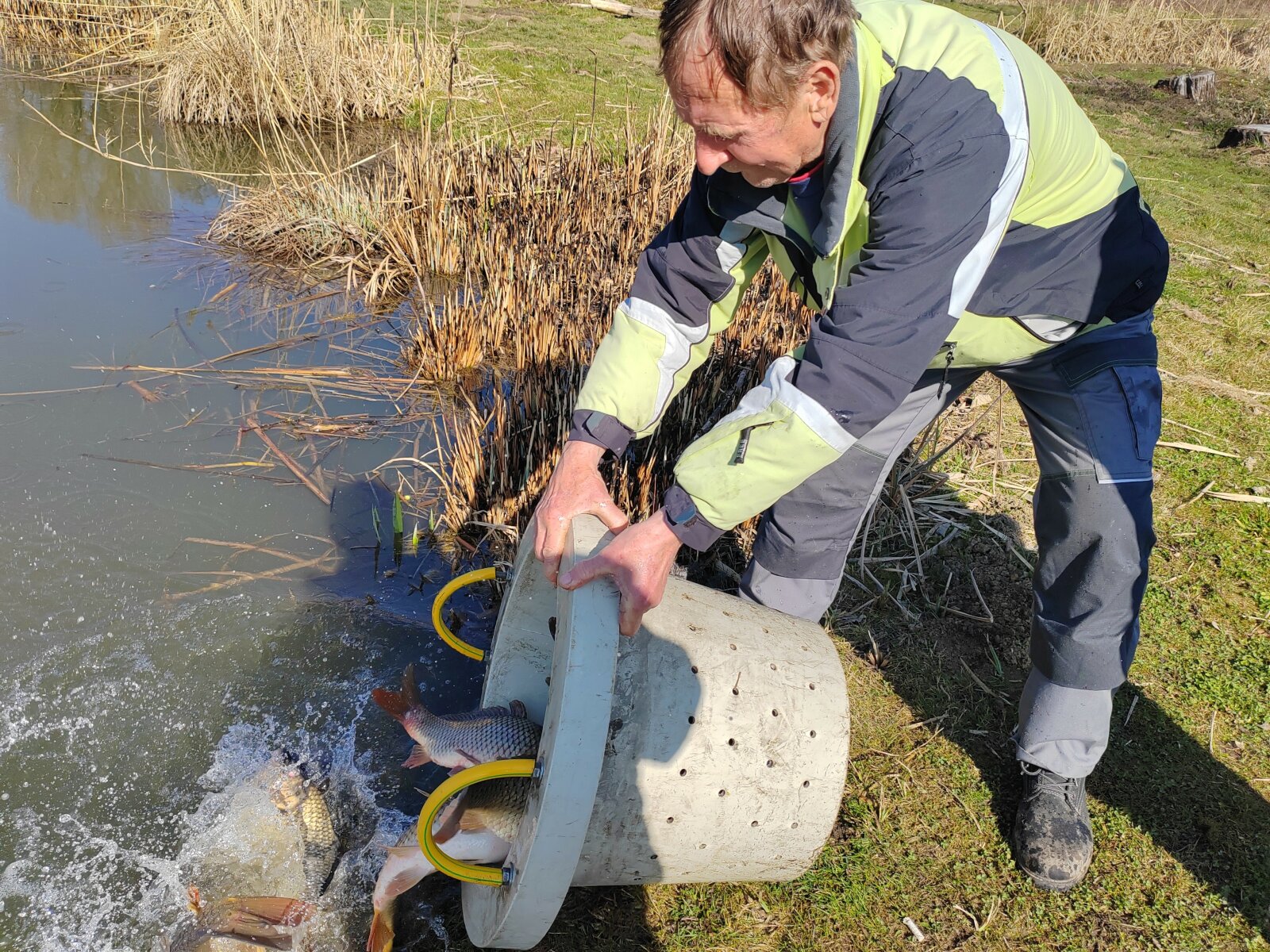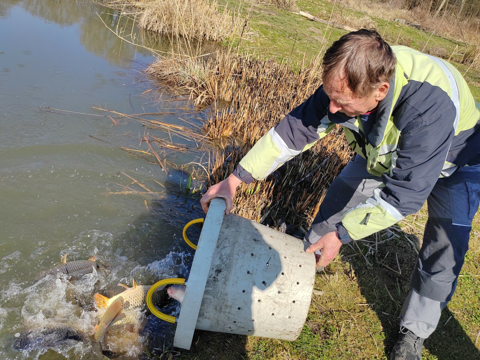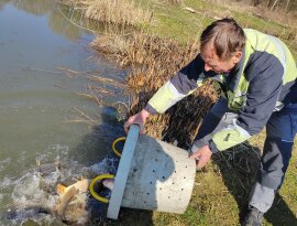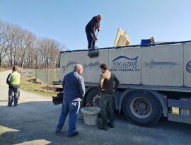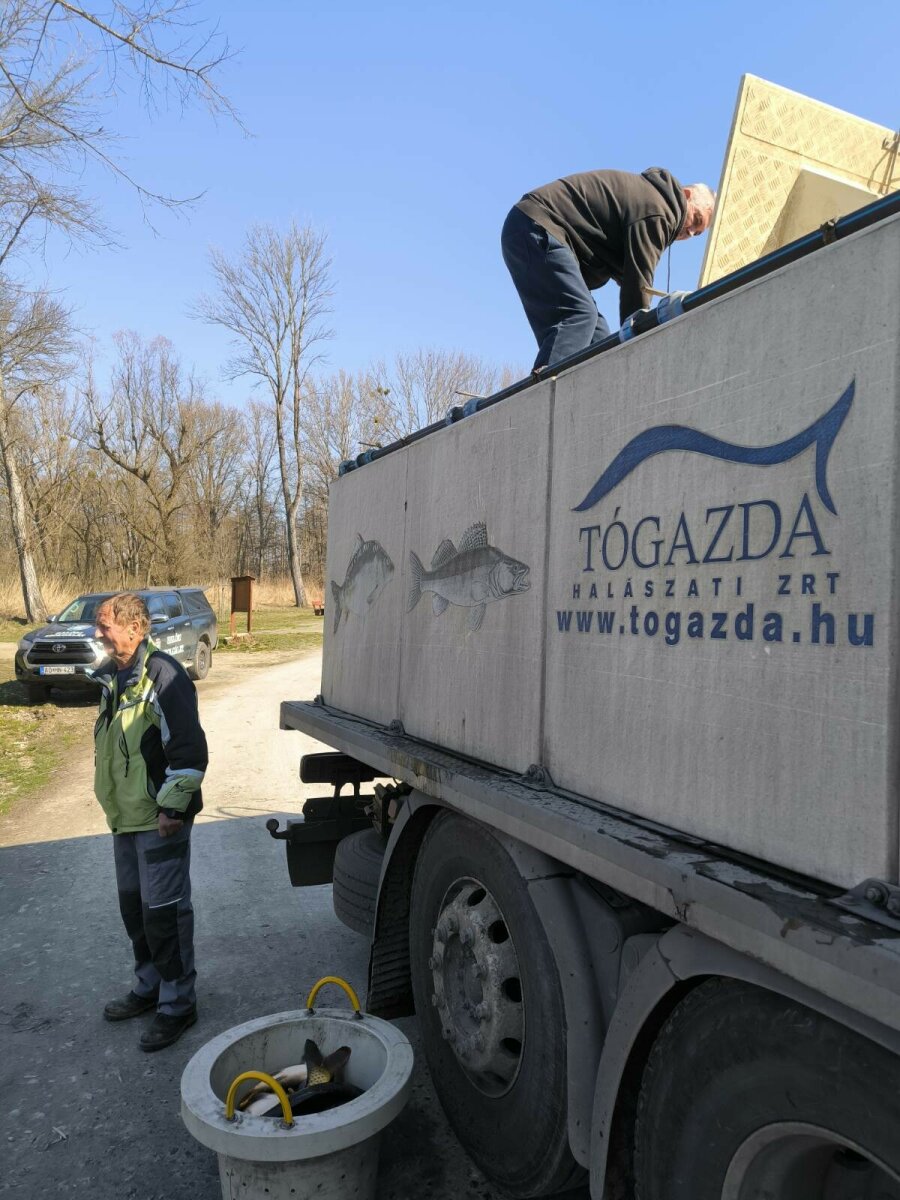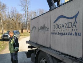 On Thursday, March 5th and Friday, March 6th, new fish stockings took place. The bream and the Balaton carp arrived from the Balatoni Halgazdálósi Nonprofit ZRT. Balatonlelle-Irmapuszta farm, while the 3rd year old carp arrived from the Tógazda Halászati ZRT. Marcali site. The following fish stockings were carried out: Thursday, March 5th: Dévérkeszeg I-II. summer: Döröskei reservoir: 500 kg Magyarszecsőd gravel pit lake: 500 kg Balaton carp, market (III. summer) Döröskei reservoir: 600 kg Körmend section of the Rába river: 250 kg Ikervár dammed section of the Rába river: 300 kg Ikervár dammed canal of the Rába river: 350 kg Friday, March 6: Market (III. summer) carp Nicki dammed section of the Rába river 200 kg Pinkamindszent lake 100 kg Hársas lake 1100 kg Magyarszecsőd gravel pit lake 1200 kg Püspökmolnár gravel pit lake 550 kg Újperinti I. Gravel mine lake 600 kg Szombathely Boating Lake 1000 kg Szombathely Fishing Lake 500 kg Kerkaszentkirály Kerka Lake 300 kg Kerkafalva Kéthatár Lake 400 kg Vadása Lake 400 kg Vasvár Lakes 550 kg Gencsapáti Fishing Lake 400 kg Csepreg Brick Factory Lake 300 kg Rábasömjén Lake 300 kg Csánig Mining Lake 500 kg Merseváti Lake 400 kg Répcelak Lake 100 kg Celldömölk Brick Factory and Park Lake 600 kg