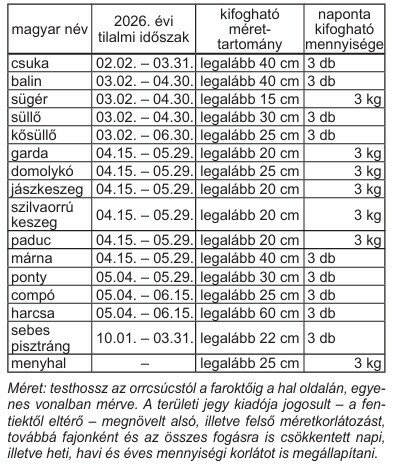 Attention! The general national information below is not comprehensive and does not replace knowledge of the laws and local regulations. Please, before starting fishing, always familiarize yourself with the local fishing regulations and fishing regulations extract for the given registered fish management water area, which can be found in the HORINFO system as an attachment to the territorial ticket or available at the given website address , or which must be printed out according to the regulations!