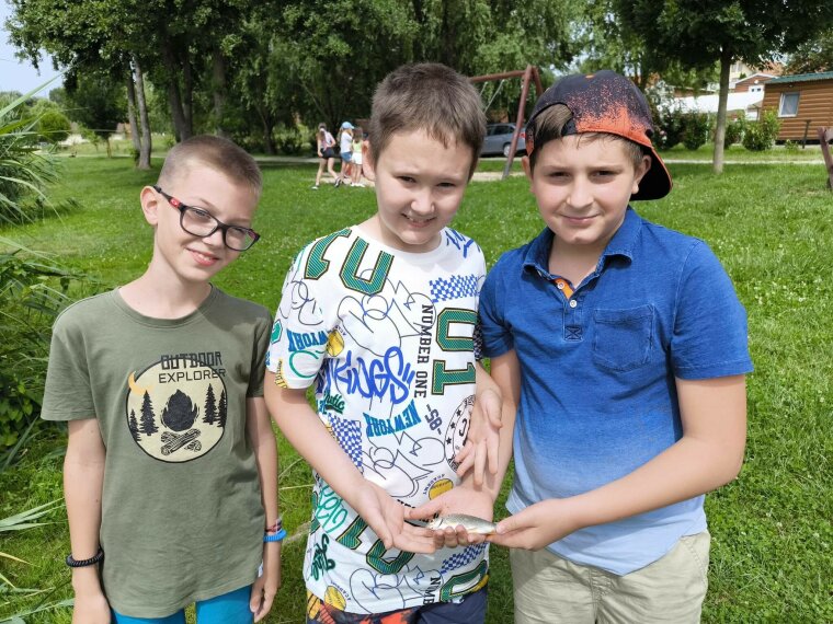 A délelőtt program zárásaként a jelenlévő halászati őrök segítségével igazi horgászatra nyílt lehetőség. A spicc botos horgászat során a gyerekek izgatottan várták, hogy ki fog először halat. A tó gazdag apró halállománya révén szinte minden fiatalnak sikerült kifogni egy kisebb keszeget, kárászt, küszt [. A gyerekek öröme és büszkesége szinte tapintható volt , hiszen többségüknek életük első horgászélményében volt részük, amit biztosan sokáig emlegetni fognak.